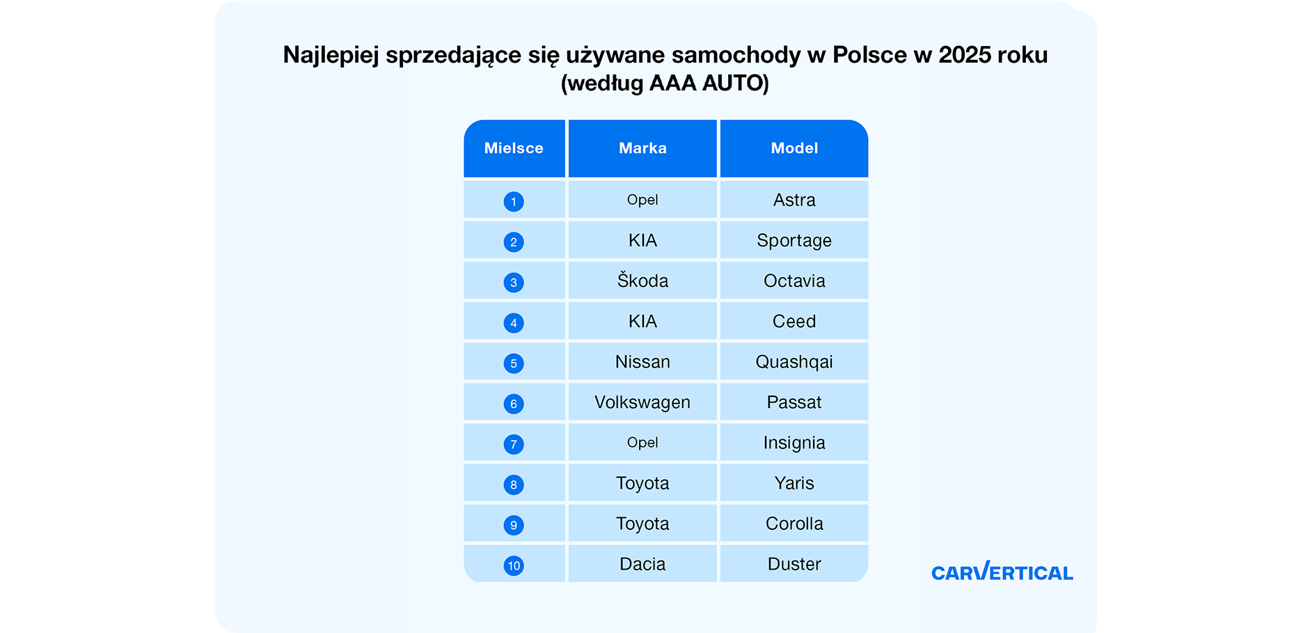 Najlepiej sprzedające się używane samochody w Polsce w 2025 roku (według AAA AUTO)